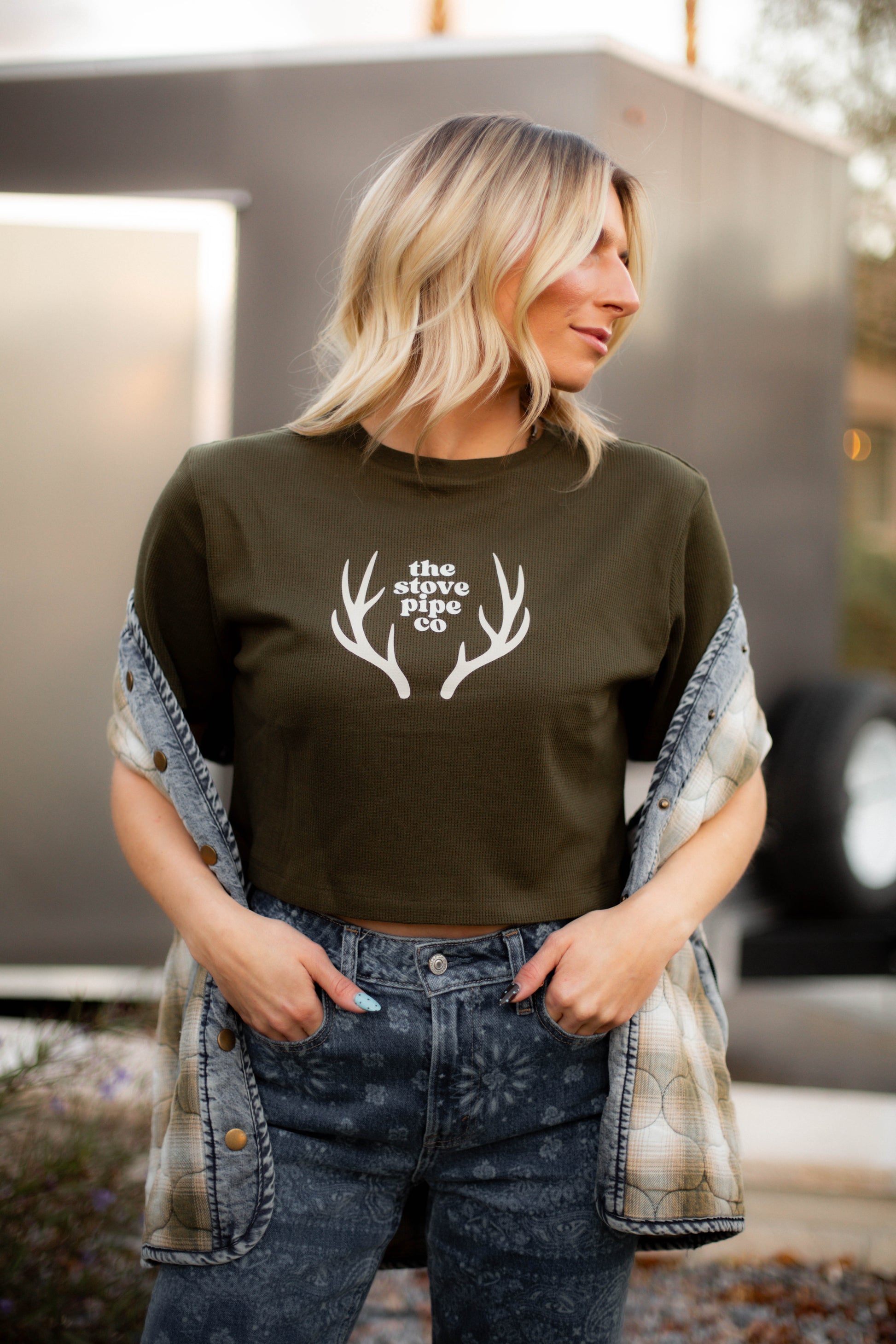 Stovepipe Waffle Knit Crop